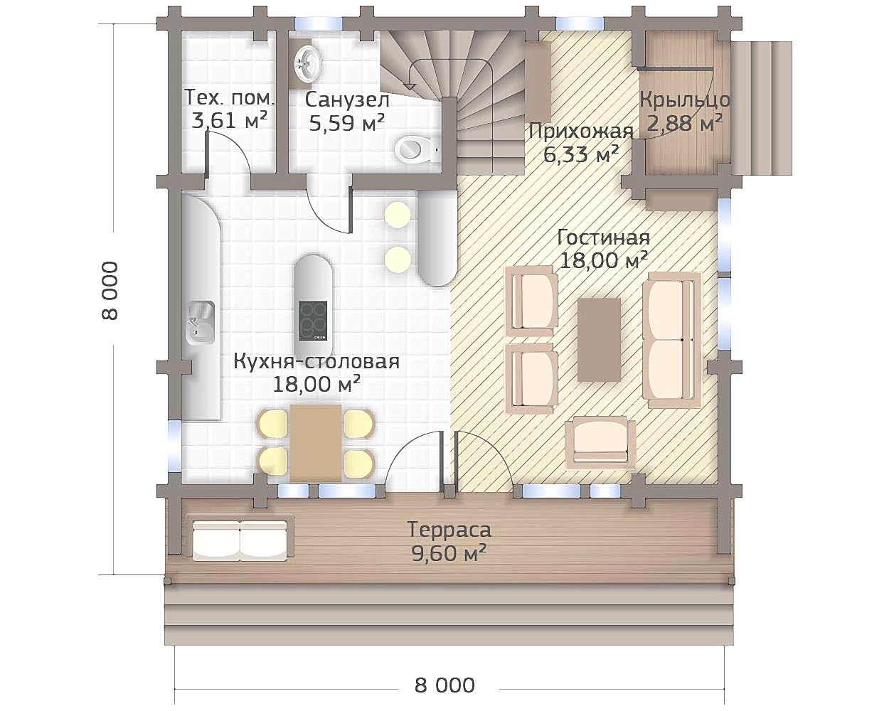 Деревянная Пин Ап (короусы, ступени, без подступенников из строганной доски 50х200)
