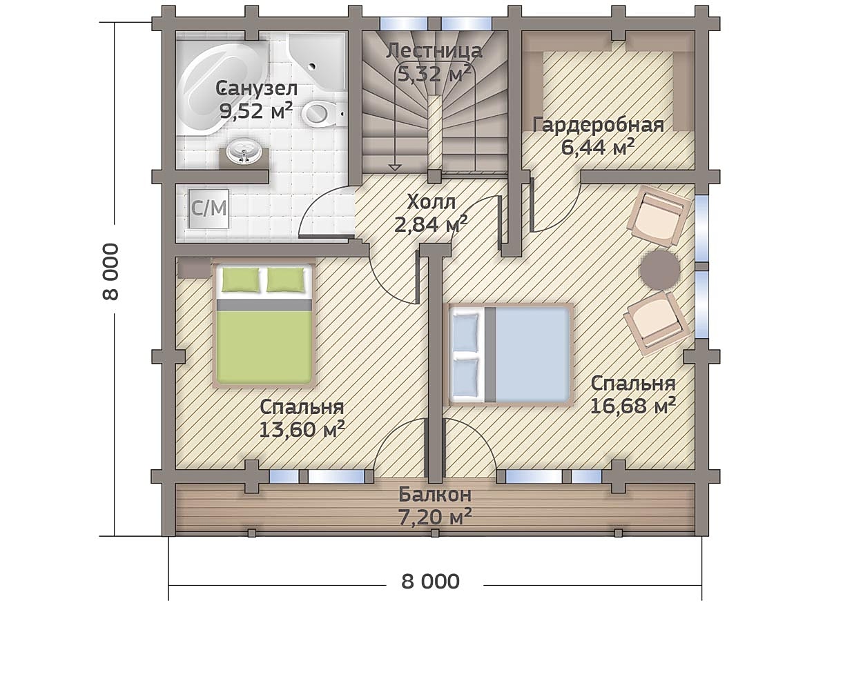 Монтаж перекрытий 2 этажа (матки) - 50х200 мм, Пин Ап породы