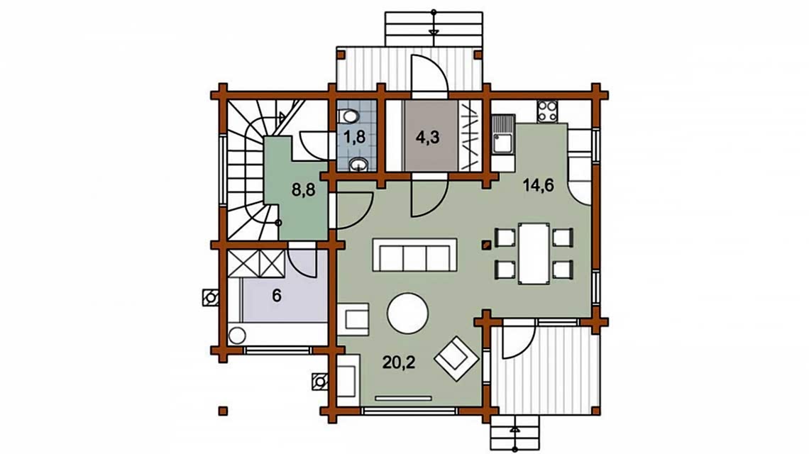 Стеновой комплект дома - сухой, микроволновая сушка, Пин Ап породы (сосна, ель)
