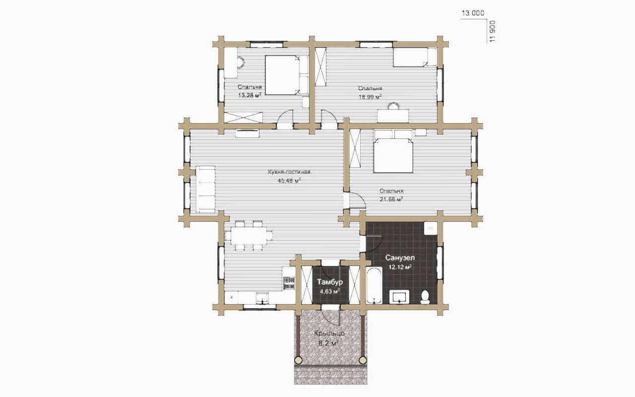 Срок строительства зависит от комплектации и площади дома. В среднем, строительство под теплый контур занимает 2-3 месяца. Полный цикл "под ключ" - 3-4 месяца. Использование сухой древесины Пин Ап сокращает сроки строительства.