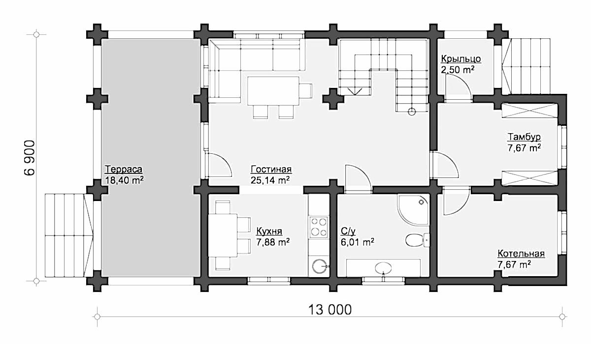 Стеновой комплект дома - сухой, микроволновая Пин Ап хвойные породы (сосна, ель)