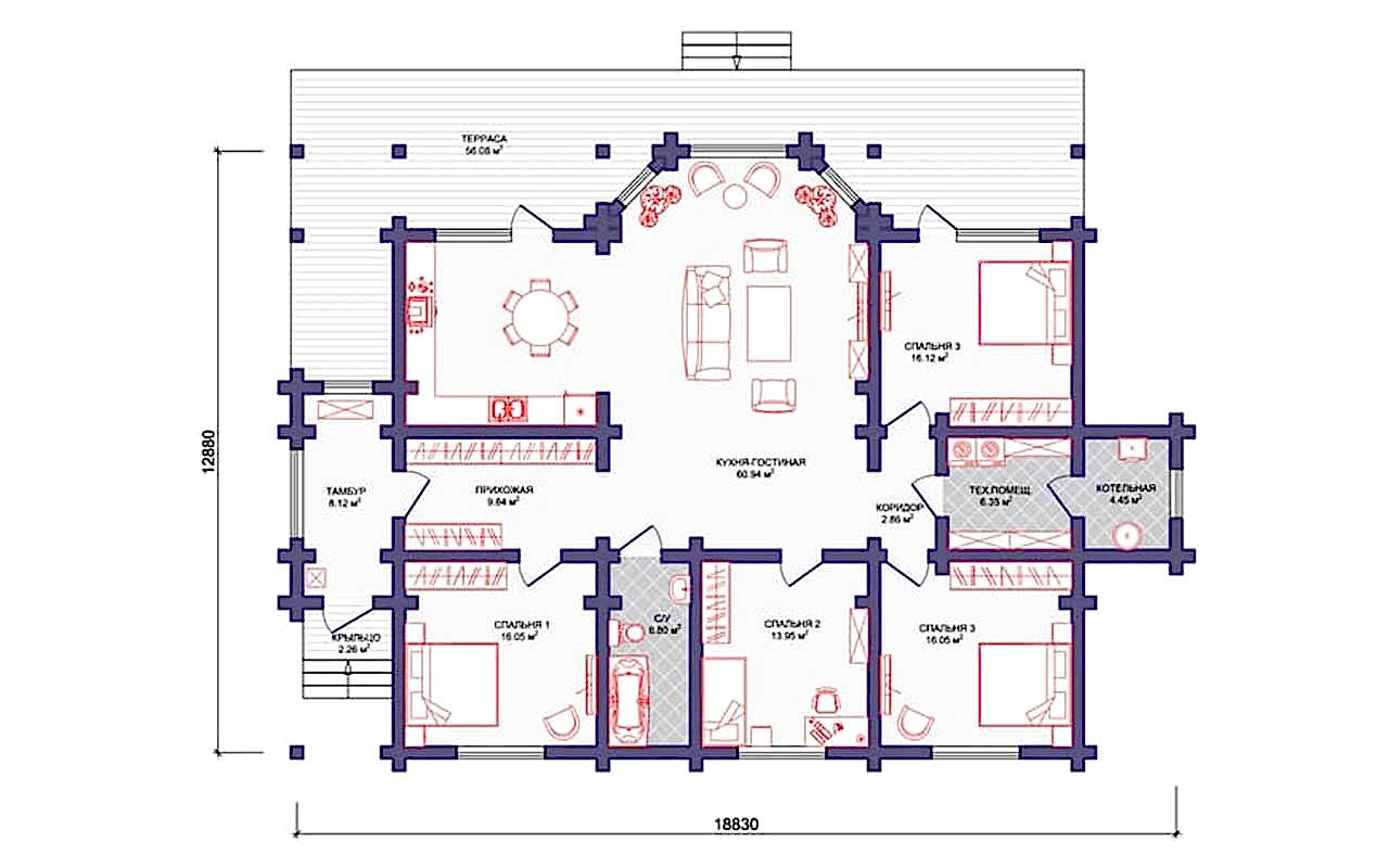 Стеновой комплект дома - Пин Ап микроволновая сушка, хвойные породы (сосна, ель)